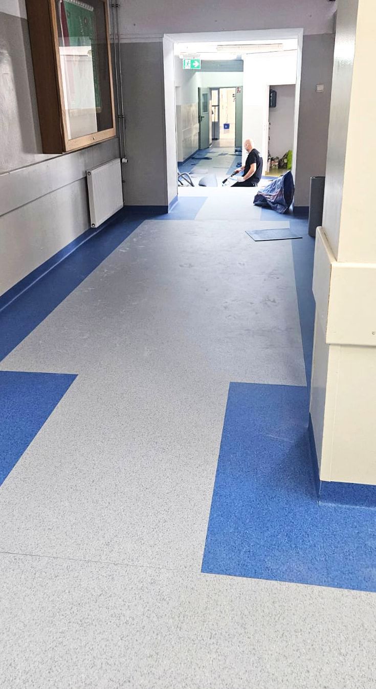 W Szkole Podstawowej w Dobieszu trwa czyszczenia i lakierowania podłóg.