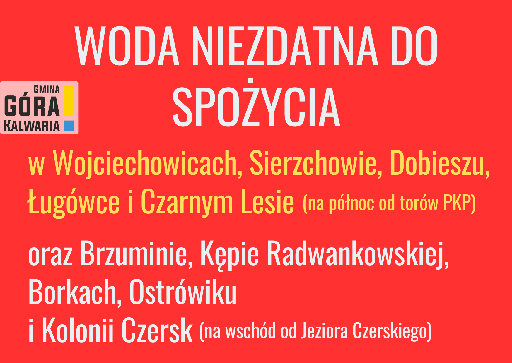 Komunikat dotyczy mieszkańców Wojciechowic, Sierzchowa, Dobiesza, Ługówki i Czarnego Lasu (na północ od torów PKP)