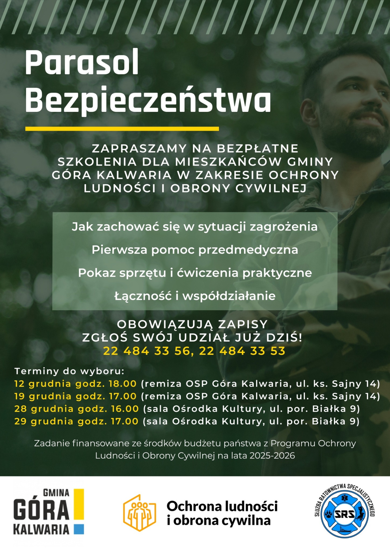 Bezpieczeństwo zaczyna się od wiedzy i umiejętności. Rozpoczynamy w naszej gminie cykl szkoleń, które wyposażą Cię w praktyczną wiedzę – od pierwszej pomocy i ratowania życia, po przygotowanie na sytuacje kryzysowe. Bo w krytycznej chwili to Ty możesz być pierwszy na miejscu, gotowy do działania, a czasem będziesz mógł liczyć tylko na siebie.
