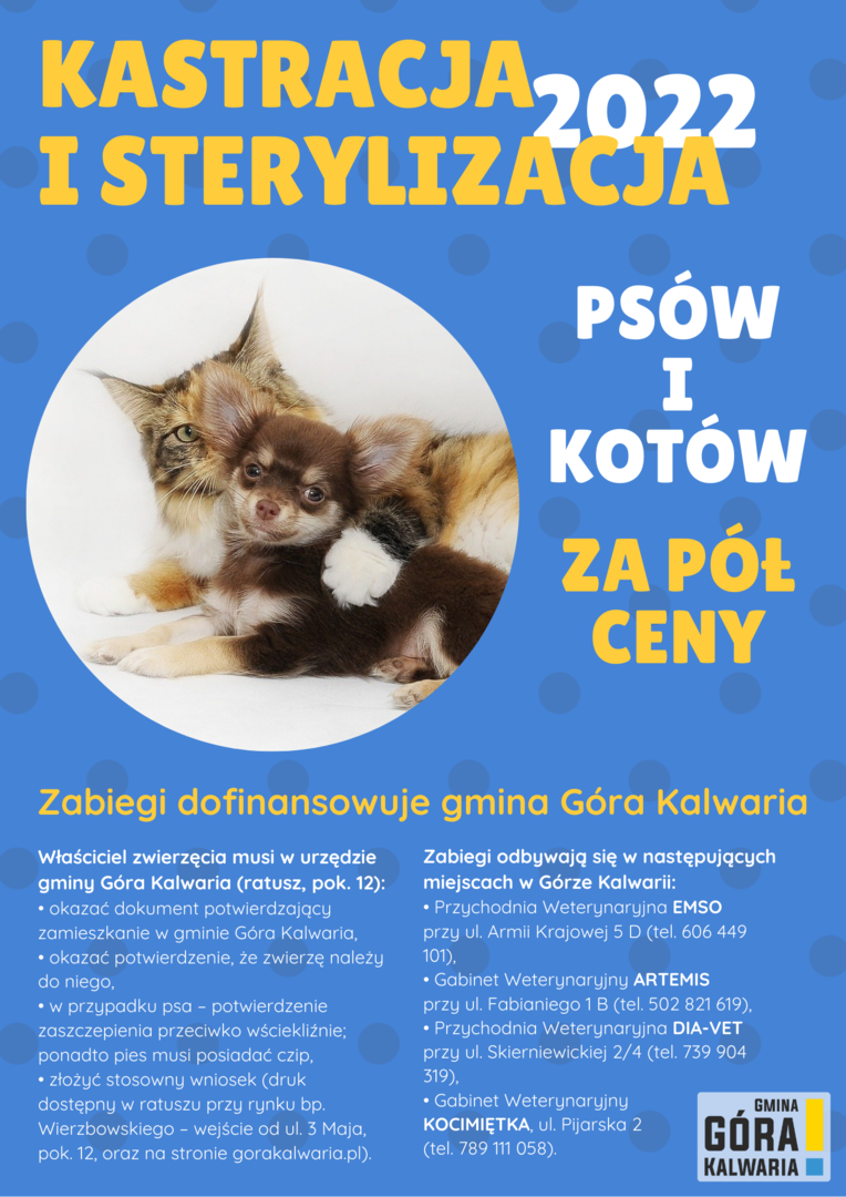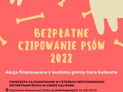 Od 2018 roku samorząd Góry Kalwarii finansuje czipowanie psów należących do mieszkańców gminy. Właściciele za zabieg nie płacą. Pupilowi wszczepiany jest przez weterynarza mikroczip – elektroniczny identyfikator. Zawiera on kod, który również weterynarz rejestruje w międzynarodowej bazie danych. Dzięki temu kiedy zwierzak się błąka, można sprawdzić, kto jest jego właścicielem (może to zrobić, za pomocą czytnika, strażnik miejski lub weterynarz). W latach 2018–2021 za fundusze z gminnego budżetu oznakowano 1315 psów.