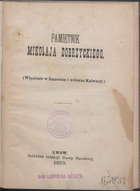 Po ogłoszeniu wyroku, razem z W. Łukasińskim, był trasą przez Górę Kalwarię przewieziony do twierdzy Zamość i tam osadzony. W drodze do tej twierdzy ich konwój zatrzymał się 6 października na nocleg w austerii (karczmie) w Górze Kalwarii. W swoich późniejszych pamiętnikach Dobrzycki odnotował, że konwojujący ich wtedy wachmistrz Janiszewski traktował ich tu „z uszanowaniem”. W 1824 r. w Zamościu na skutek próby buntu osadzonych tam więźniów został, podobnie jak W. Łukasiński, ponownie aresztowany i ogłoszonym wyrokiem zdublowano mu pozostałą do odsiedzenia orzeczoną już uprzednio karę. W dzień po wywiezieniu z Zamościa W. Łukasińskiego, jego także wsadzono do więziennej kibitki i także z zawiązanymi oczami wywieziono w nieznanym kierunku. Po przybyciu na miejsce 3 grudnia 1824 r. okazało się, że jest w Górze Kalwarii. Tutaj został uwięziony w małej celi w podziemiach klasztoru bernardyńskiego, w tej jego części, którą zamieniono wtedy na carskie koszary. Był tu przesłuchiwany przez płk. N. Korffa, gen. D. Kurutę i samego głównego ówczesnego policmajstra N. Nowosilcowa. Podobnie jak mjr W. Łukasiński, był stąd także przewożony do Warszawy na dodatkowe przesłuchania i tam również miesiącami więziony. Nie jest pewne, czy w trakcie swego tutejszego uwięzienia, dowiedział się o tym, że w Górze Kalwarii, w odległym o 300 m od klasztoru bernardyńskiego - klasztorze popijarskim, był w tym samym czasie więziony W. Łukasiński. Ich osobne, skryte tutaj przewiezienie, a potem takież uwięzienie, miało przecież zapobiec ich wzajemnym kontaktom. Znając jednak skłonność do przekupstwa carskich strażników, nie można wykluczyć, że mogli dowiedzieć się o sobie. Dopiero jednak przypadek zrządził, że doszło do ich spotkania. A stało się to w Warszawie, gdy w lipcu 1827 r. byli osobno więzieni w starej ludwisarni na ul. Smoczej. Traf sprawił, że 22 lipca zapaliła się wtedy, sąsiadująca z miejscem ich uwięzienia, fabryka sukna Frenkla i pod groźbą zagrożenia dalszym rozszerzaniem się pożaru, musiano ich ewakuować z cel, w których byli osobno i bez wiedzy o sobie osadzeni. Podczas zamętu, pilnujący ich strażnicy zamknęli ich wtedy w jednym pomieszczeniu, choć pod strażą. Ponieważ pożar i stan zagrożenia trwał kilka godzin, mieli wówczas niespodziewanie wiele czasu „żeby się nagadać” i dopiero wtedy wszystko sobie o swych losach opowiedzieć. W. Łukasiński nie wrócił już potem do Góry Kalwarii uwięziony póżniej w koszarach Wołyńskiego Pułku Lejb-Gwardii przy ul. Dzikiej, w przeciwieństwie do M. Dobrzyckiego, którego ponownie odwieziono do Góry i gdzie więziono go jeszcze ponad rok. W październiku 1828 r., po odbyciu całości kary, został uwolniony z tutejszego uwięzienia, ale nadal pozostał w Górze Kalwarii i nawet tu na jakiś czas zamieszkał. Wspominał potem w swoich pamiętnikach gościnność kilku tutejszych mieszczan i okolicznej szlachty, wymieniając także ich nazwiska: Ostromęccy, Mycińscy, Ciechorscy i Nowakowscy.