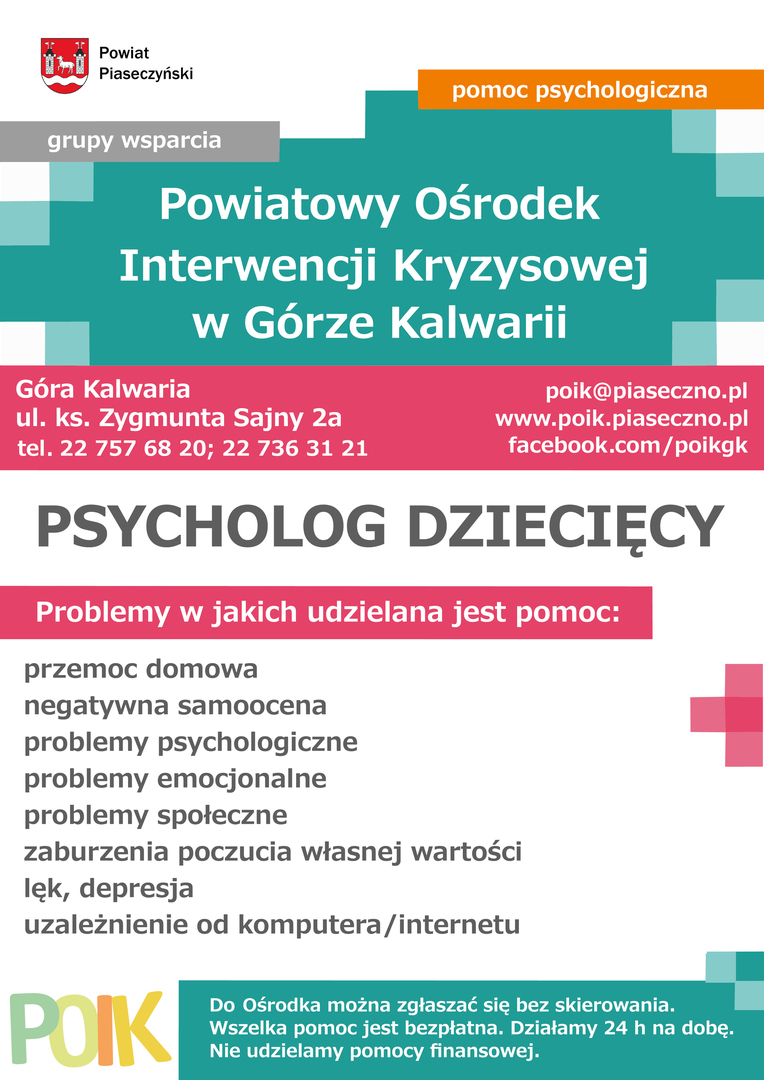 Powiatowy Ośrodek Interwencji Kryzysowej z siedzibą w Górze Kalwarii udziela pomocy w kryzysowych sytuacjach życiowych. Bezpłatnie i każdemu, kto zgłosi się z problemem, który go przerasta.